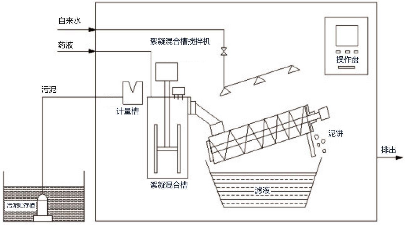 2. 污泥通過計量槽調整流量后被輸送到絮凝混合槽內,通過攪拌機進行充分攪拌混合。
